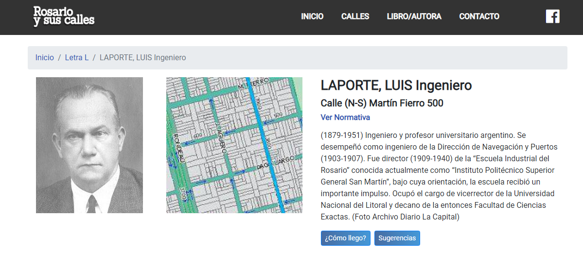 Una de las personas que tiene su nombre grabado en la calle es el Ingeniero Luis Laporte, reconocido por haber participado fuertemente en la creación de la Facultad de Ciencias Matemáticas, Físico-Químicas y Naturales Aplicadas a la Industria. En 1927 Luis Laporte fue nombrado Decano de la Facultad y en 1928 el Consejo Superior lo designó Vice-Rector de la Universidad Nacional del Litoral.