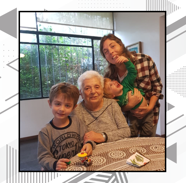 Carlota con su nieta y bisnietos.